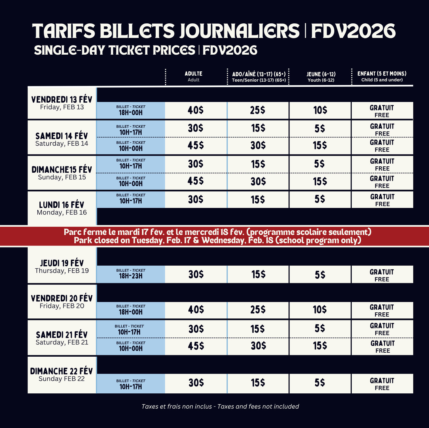 - Le mardi 17 février | FERMÉ
