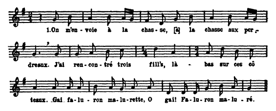 Crédit: Marius Baribeau, The Ermatinger Collection of Voyageur Songs, The Journal of American Folklore, Vol. 67, No.264 (Apr-Jun, 1954)