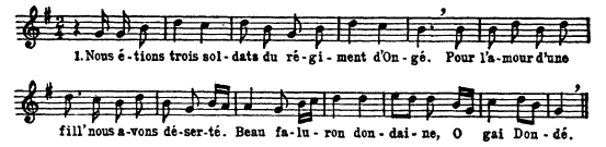 Crédit: Marius Baribeau, The Ermatinger Collection of Voyageur Songs, The Journal of American Folklore, Vol. 67, No.264 (Apr-Jun, 1954)