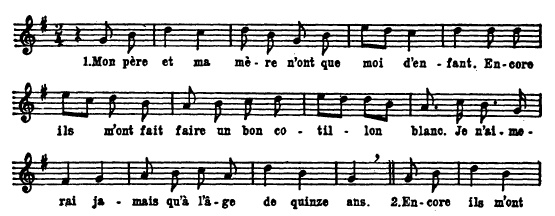 Crédit: Marius Baribeau, The Ermatinger Collection of Voyageur Songs, The Journal of American Folklore, Vol. 67, No.264 (Apr-Jun, 1954)